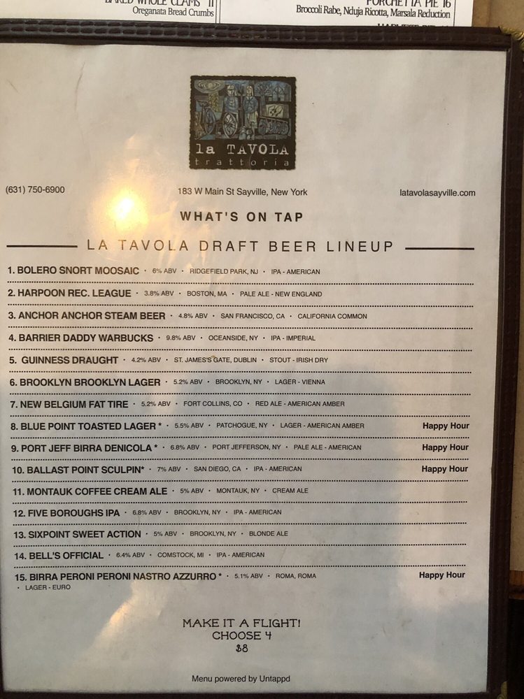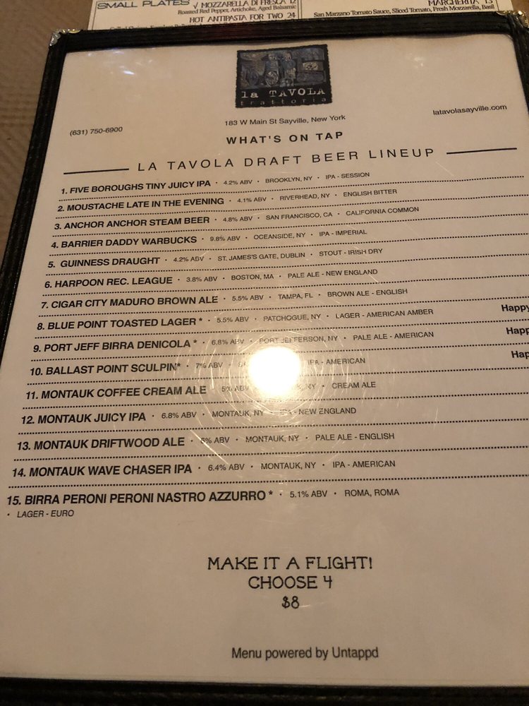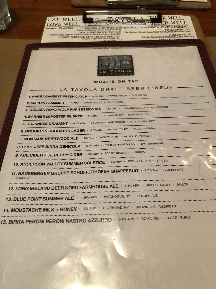 La Tavola Trattoria in Sayville, NY, offers a delightful dining experience with a range of amenities, including vegan and vegetarian options, live music, and happy hour specials. The menu features exquisite sharing plates like Fontina Fonduta, savory small plates like Grandma D's Meatballs, and refreshing salads like the Fig Salad. Customers praise the generous portion sizes and friendly service. The cozy ambiance and outdoor seating make it ideal for any occasion, from casual dinners to special events. The diverse menu, including gluten-free options, ensures everyone can find something to enjoy. La Tavola Trattoria is a must-visit spot for authentic Italian cuisine with a modern twist.